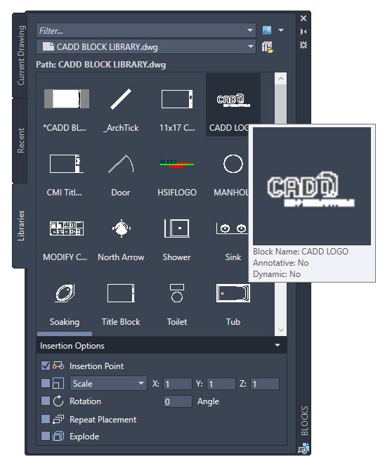 Figure CADD 4 AutoCAD 2021 Block Palette and the new Block Libraries Tab